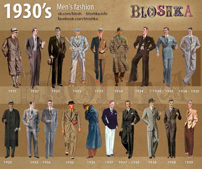 Un cartel anunciador de una muestra de indumentaria para mujeres y hombres en 1930